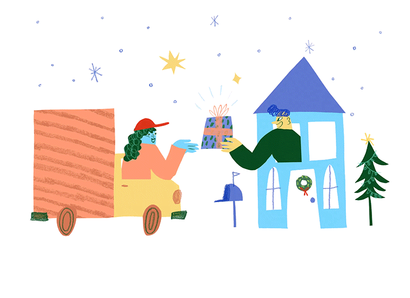 Illustrations commissioned by Etsy to communicate with their sellers during holiday season in 2021.
